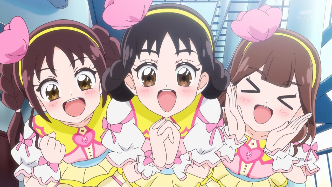「相変わらずの天然ボケ」プリルン&田中ぷりん&キュアズキューン@CV南條愛乃女史、「ずっこけ担当」紫雨こころ&キュアキュンキュン@CV高森奈津美女史、「フォローなら任せて」メロロン&田中めろん&キュアキッス@CV花井美春女史の組み合わせが絶妙。5人体制になった時、初期組と追加組でどうバランス取るか心配だったけど今のところ上手くいっていて安心。メロロンとダークイーネ@CV佐藤利奈女史の関係が一抹の不安材料だけど。